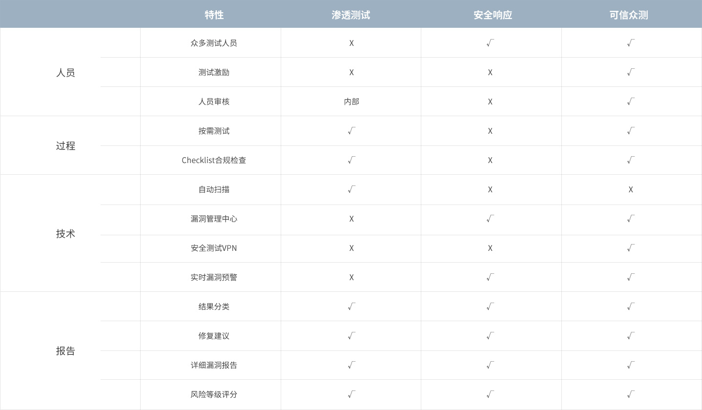 如何可信人员可信:线下认证、保密协议、测试承诺、法律学习、能力考评、定向邀请过程可信:智能限流、双向审计、日志回溯、异常封停、HTTPS解密、流量签名结果可信:VIP服务、专家审核、漏洞复测、安全咨询、加过建议、专业报告