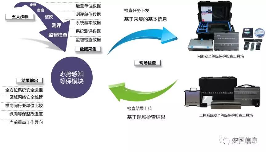 安恒信息在第一时间完成了等保2.0与产品的融合。通过等级保护检查工具本地检查能力、态势感知平台数据管理能力充分结合,完成了等级保护2.0下的常态化工作闭环逻辑。能够有效帮助用户将等级保护纳入常态化工作,推动网络安全工作进入良性发展轨道。