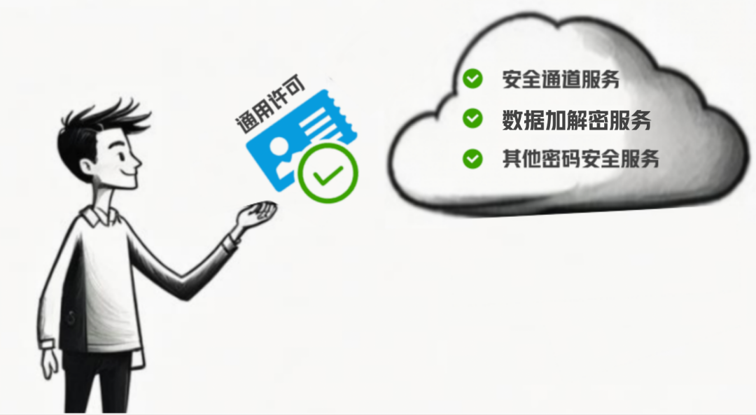 当客户有云上业务需要过密评时,可以通过安恒云-天池的通用许可,兑换安全通道服务、数据加密服务等密码安全服务实现云上业务系统的密评改造。