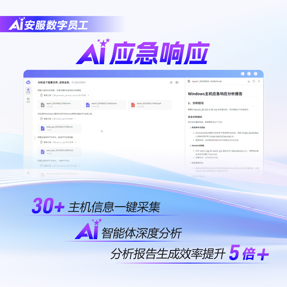 一键深度采集,实时威胁感知,精准反APT,智能加固守护,应急响应专家的数字分身!